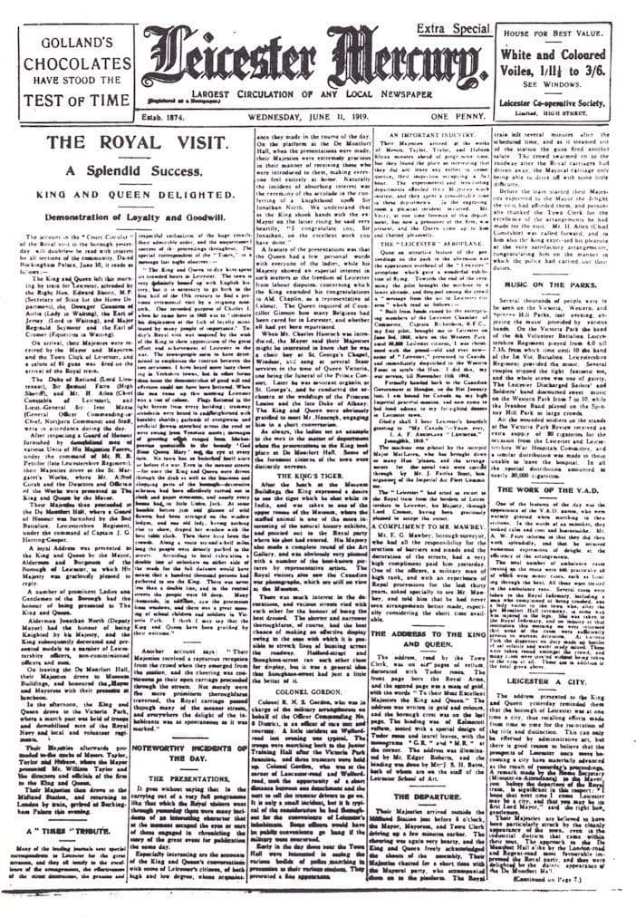 1919 Royal Visit Leicester Newspaper Cover Rare Ephemera