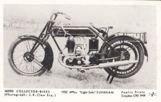 bw276 This card appears circa 1970s and shows the 1922 499cc Light Solo Sunbeam motorcycle unused bar slight imperfections in outstanding condition