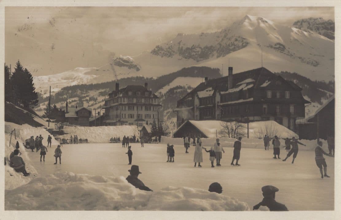 Adelboden Eislauf 1929 Walking On Ice Antique Switzerland Postcard
