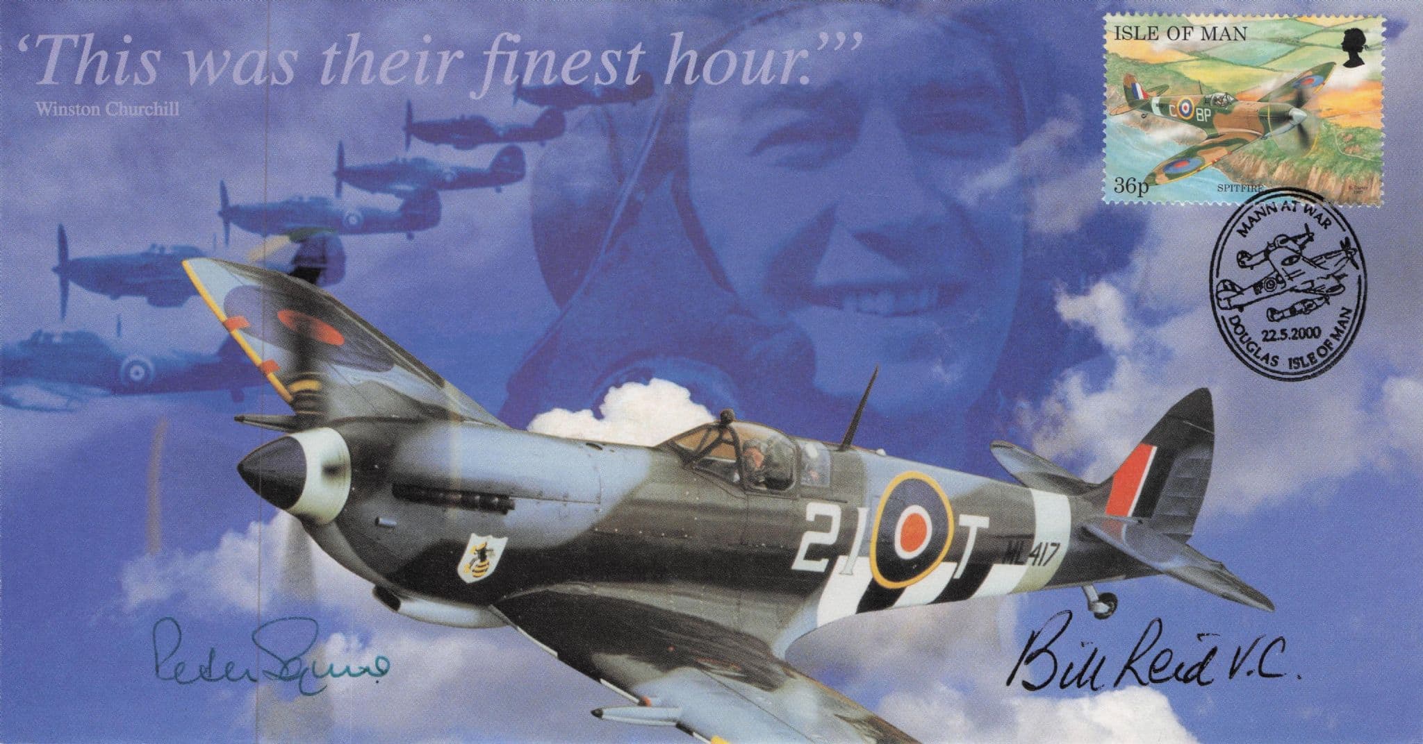 STB039 This is a stunning rare This Was Their Finest Housr collectors official limited edition first day cover hand signed by historic veteran pilot Bill Reid who has personally autographed the souvenir where his signature rests perfectly below the special commemorative first day of issue frank in mint condition.