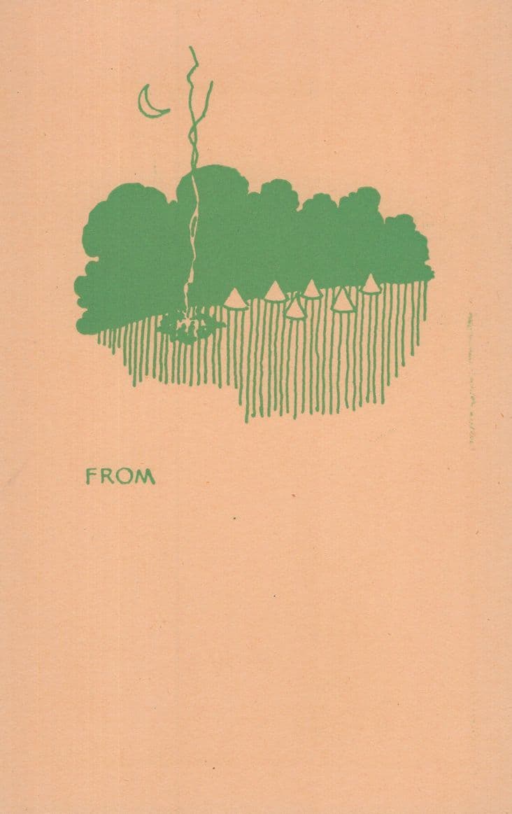 zx507 A vintage postcard that whilst came from a predominantly 1950s collection this looks much earlier - It is specially for Scouts and Guides and sends the user Greetings From The Camp which the user can complete when posting - It was published by Newington Causeway London company and the card is mostly green too adding to the Scouting colours - Reverse (not shown) has the address area to complete by the Scout for the recipient, and shows a further artist image of three scouts walking together - It is unused and mint and has great character.