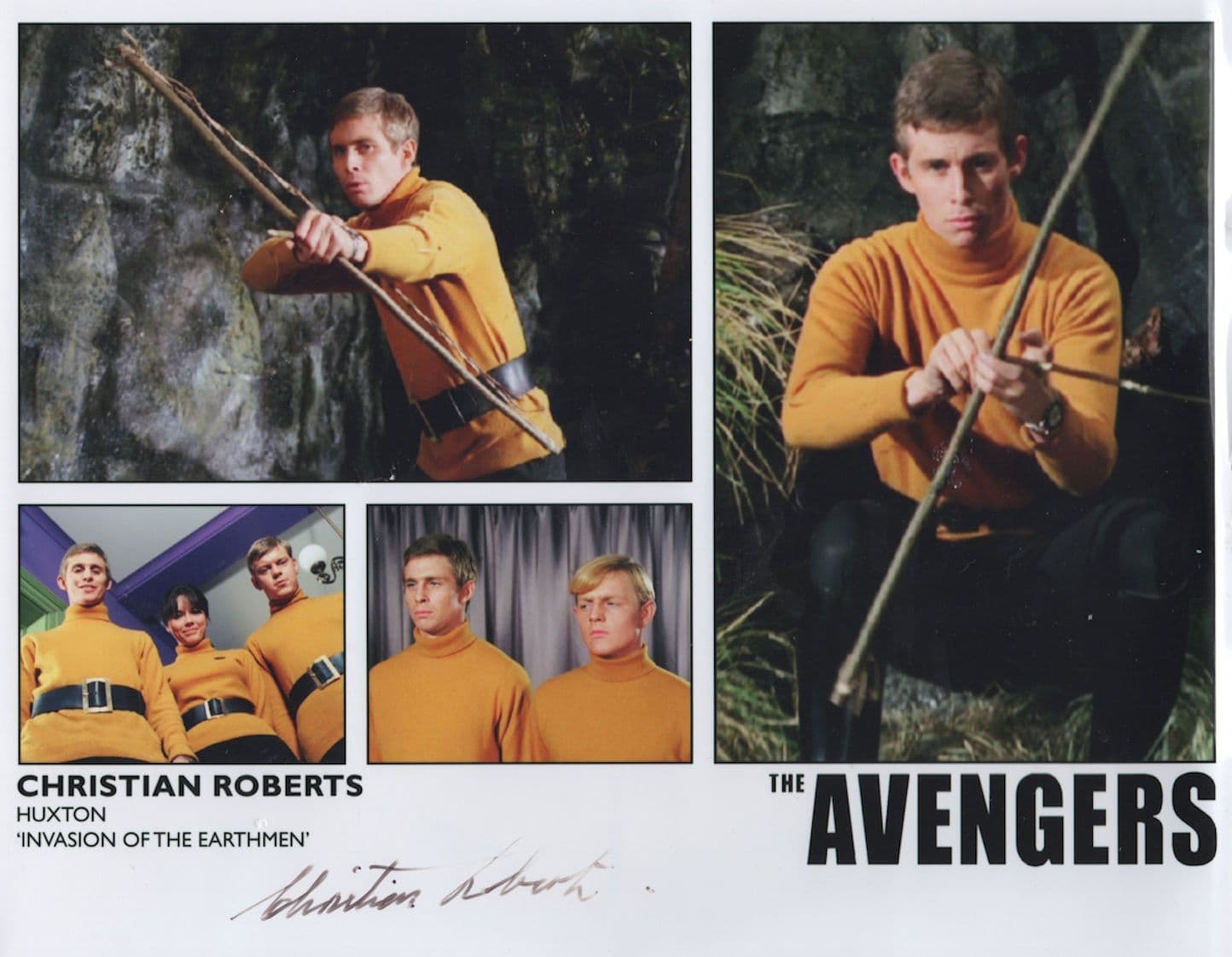 SMAtoI-B A stunning 10" x 8" hand signed photo for the Avengers with sci fi actor Christian Roberts starring as Huxton where his signature rests perfectly below his portrait undedicated - please note this has a right side fault (strong indent to the edge approx 4mm from side running down, one small lower border area too) otherwise great but please allow.