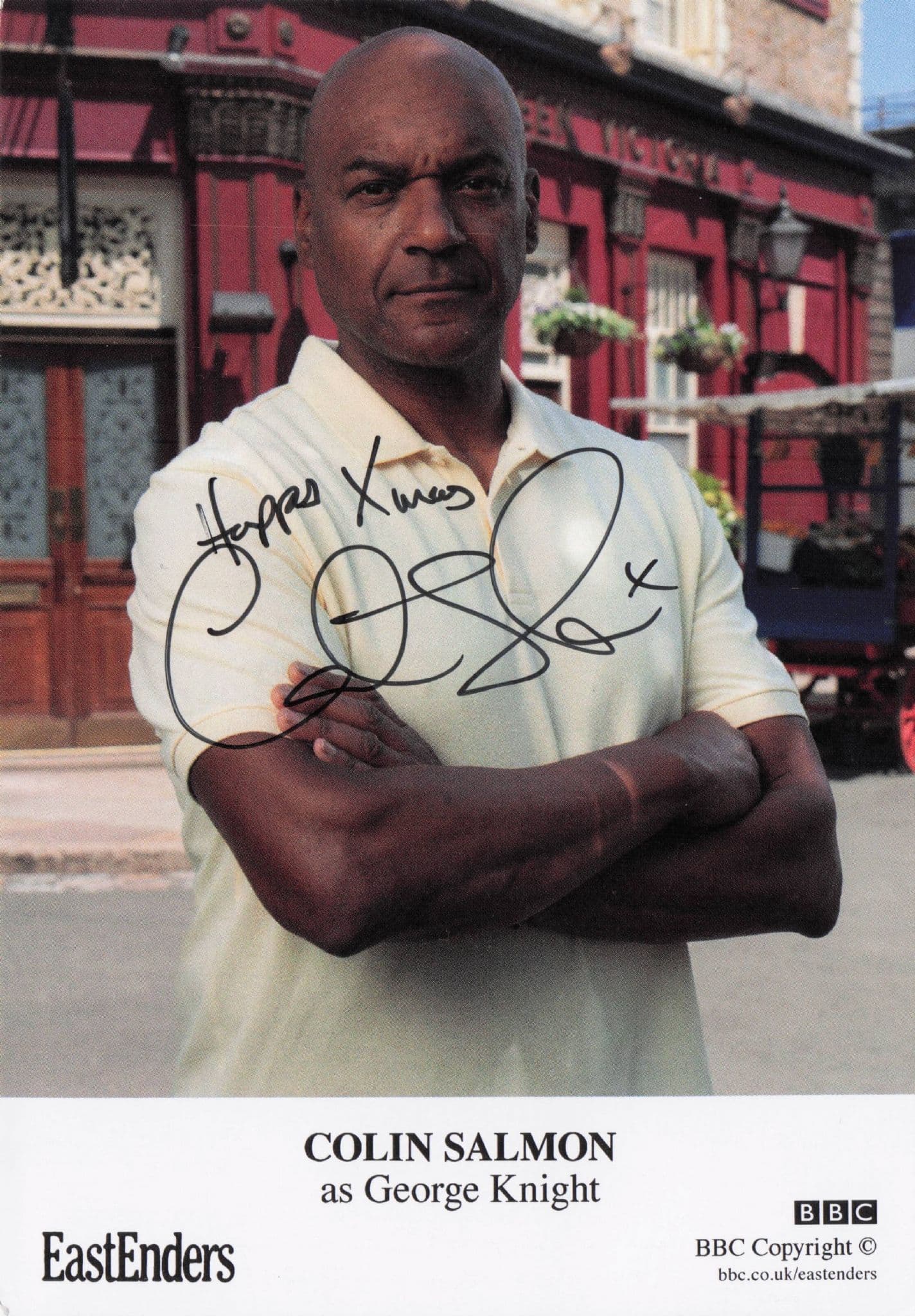 PFAS211 This is an original 6" x 4" hand signed official cast card photo for Colin Salmon as George Knight in BBC TV's Eastenders who has personally signed the souvenir where his signature rests perfectly accompanying his portrait - This is one of the hardest cast cards to find and the one I have secured is undedicated and mint - You wont source better.