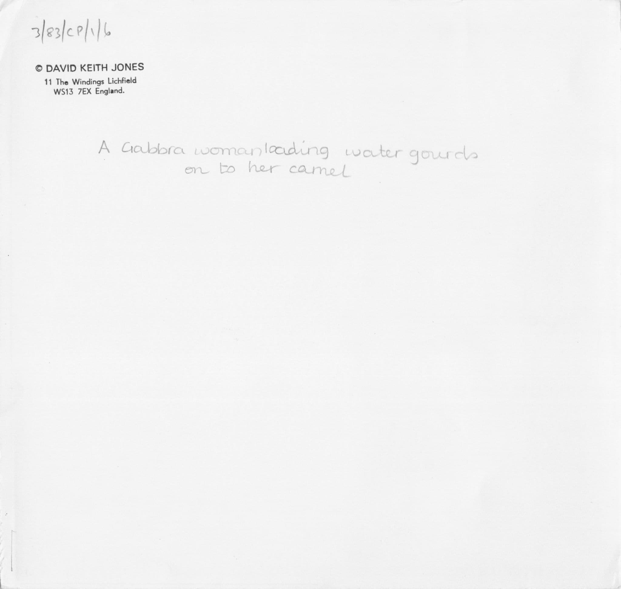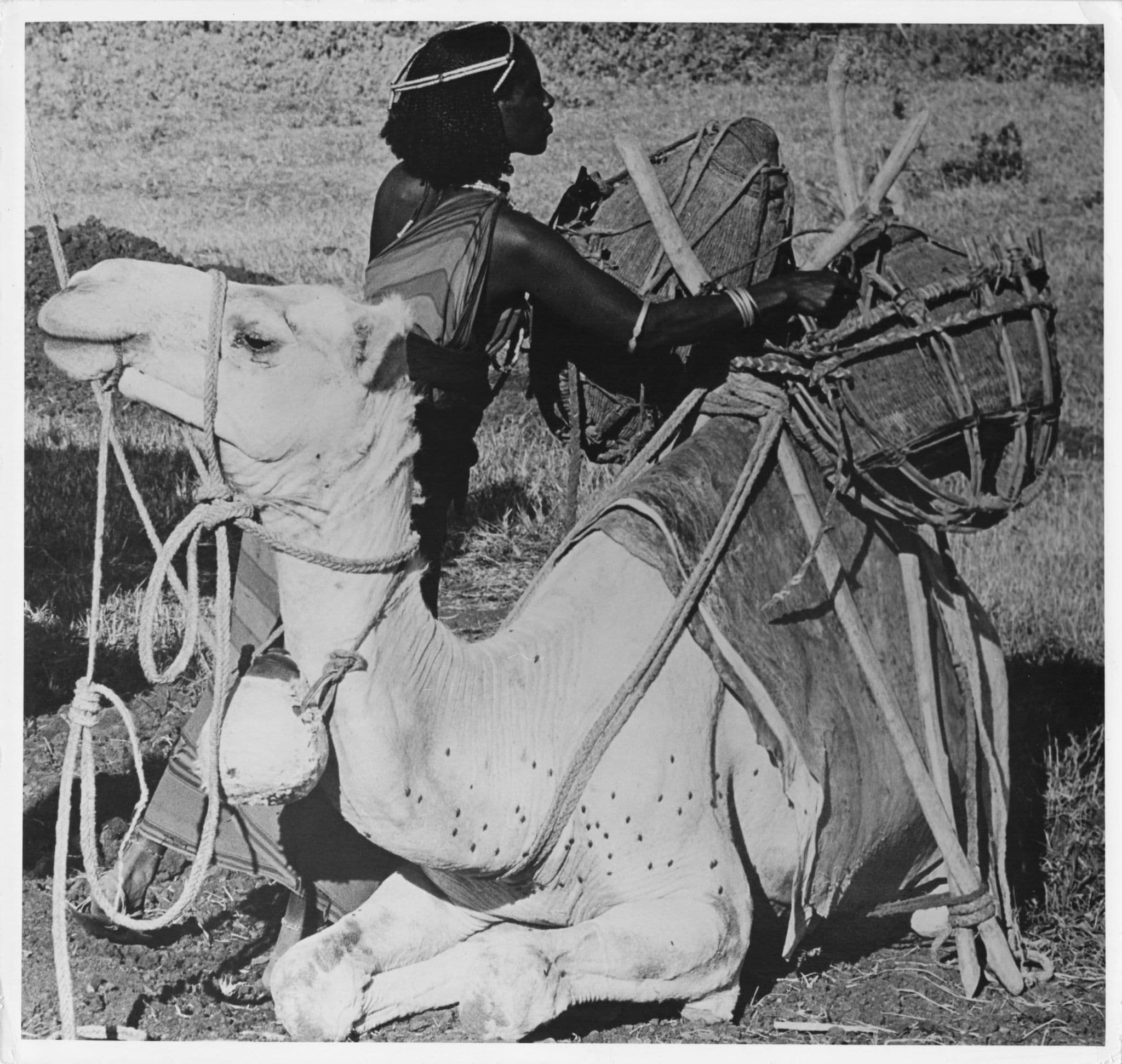 CHAU4379 This is an original and official 9" x 9" personally taken vintage press photo from David Keith Jones of a Gabbra woman he met showing him how she loaded water gourds onto her camel to take the water back to her home. David Keith Jones (1933-2022) will always be remembered as one of the most historic photographers of kind. His deep love of travel, history, Africa and wildlife led him and his wife Carla all over Africa & the world, their travels documented by the amazing photos he took from his journeys. In 1968, he moved to Kenya and started publishing photographs and articles where he taught physics for many years. Later he became a fulltime photographer & writer, and was editor of the East African wildlife society magazine 'Swara'. This photo is part of his privately sold collection and reverse has his official hand frank for lifetime COA authenticity (see image 2) and I believe the handwriting on reverse is David's too. It is a one off opportunity and is excellent condition. Please see all my other African photographs from the same estate of David Keith Jones all listed at my store.