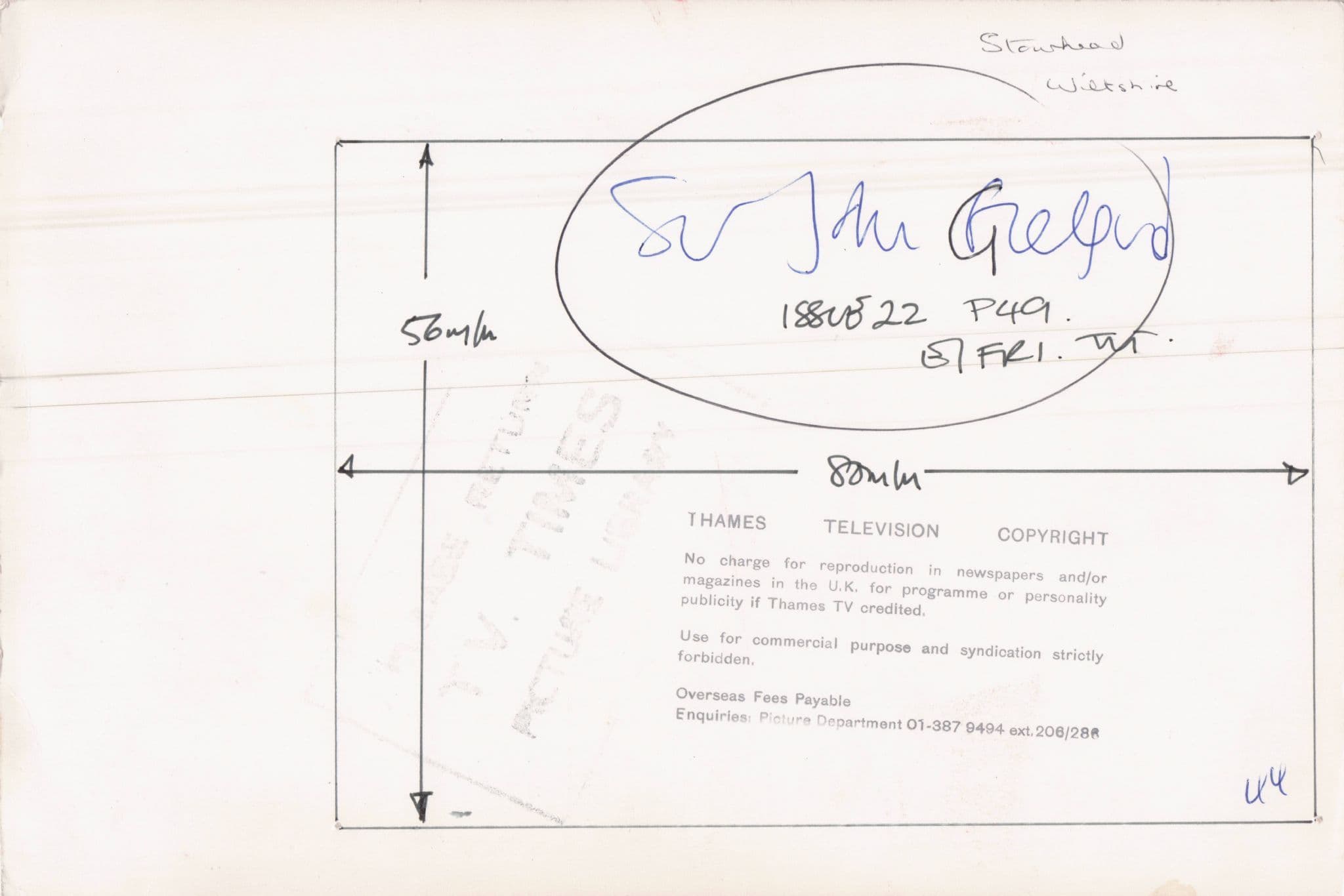 SMATZBD ORIGINAL 9" x 7" VINTAGE PRESS PHOTO FROM THE TV TIMES ARCHIVES - This listing forms part of a collection of early television media photos for historic actor John Gielgud and from one of the most specialist collections of its kind. This features John at the waterside in Stourhead Wiltshire. It has the TV Times official press markings & hallmarks on reverse (see image 2) . It is outstanding condition. It was the official TV Times master for using that week in the ITV magazine. Own a piece of John Gielgud history and please see all my other John Gielgud vintage press photos at my store.