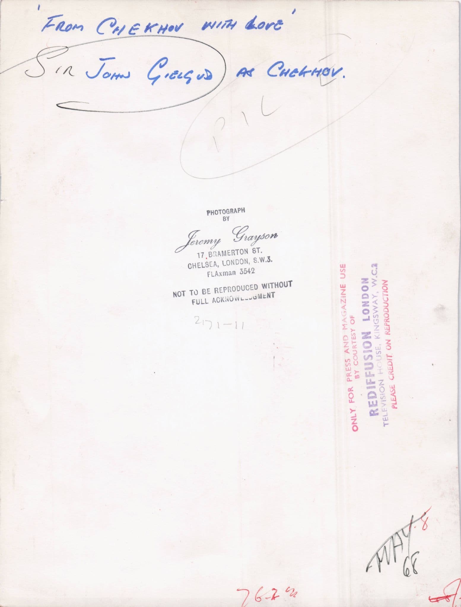 SMATZBD ORIGINAL 10" x 8" VINTAGE PRESS PHOTO FROM THE TV TIMES ARCHIVES - This listing forms part of a collection of early television media photos for historic actor John Gielgud and from one of the most specialist collections of its kind. This features John in From Chekhiv With Love. It has the TV Times official press markings & hallmarks on reverse (see image 2) . It has some places to allow as is very early (its on Rediffusion Press) but it is very good condition indeed. It was the official TV Times master for using that week in the ITV magazine. Own a piece of John Gielgud history and please see all my other John Gielgud vintage press photos at my store.
