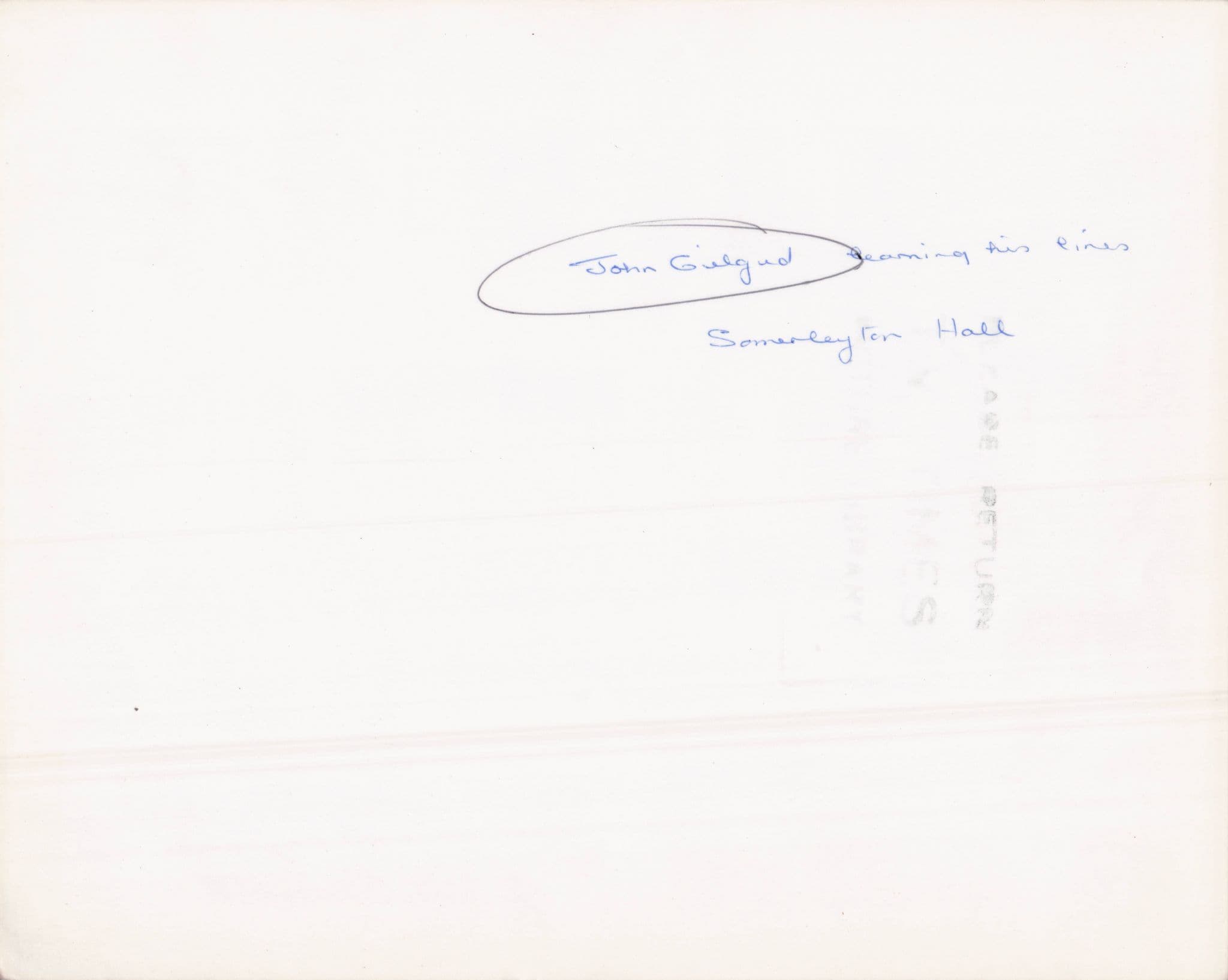 SMATZBD ORIGINAL 9" x 7" VINTAGE PRESS PHOTO FROM THE TV TIMES ARCHIVES - This listing forms part of a collection of early television media photos for historic actor John Gielgud and from one of the most specialist collections of its kind. This features John at Somerleyton Hall rehearsing his lines for the episode in Tales Of The Unexpected he was about to film. It has the TV Times official press markings & hallmarks on reverse (see image 2) . It is mint condition.. It was the official TV Times master for using that week in the ITV magazine. Own a piece of John Gielgud history and please see all my other John Gielgud vintage press photos at my store.