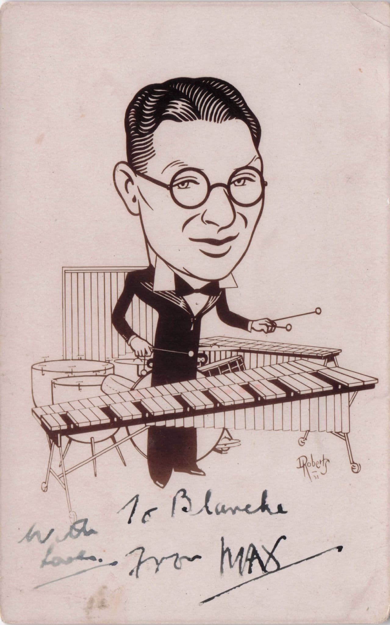 PFAS199 Antique hand signed plain back 5.5" x 3.5" of this vintage Jazz Musician who will need some research - The signing is detailed on reverse as was obtained at the Birmingham Trocadero in 1930 - You can view the musicians artist caricature and the performers name in Leo - This could be a jazz legend but a music historian must research to reap the rewards of this vintage Birmingham autograph - Has small places to allow and some reverse ageing (other side only) but is very good condition indeed and has great character with the signing by hand in the lower right corner.
