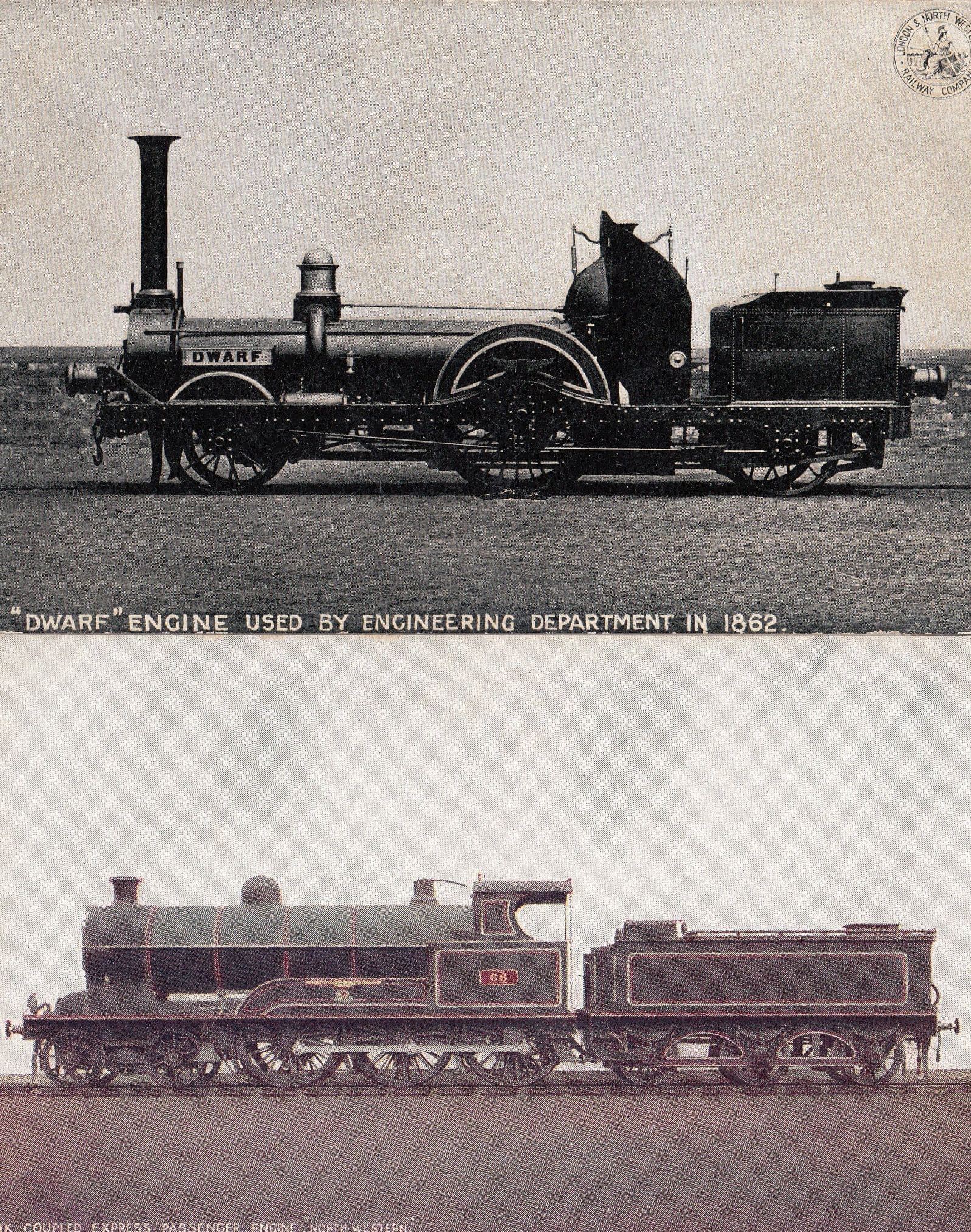 LNWR Dwarf Engine Used by Engineering Dept 1862 Train 2x Postcard