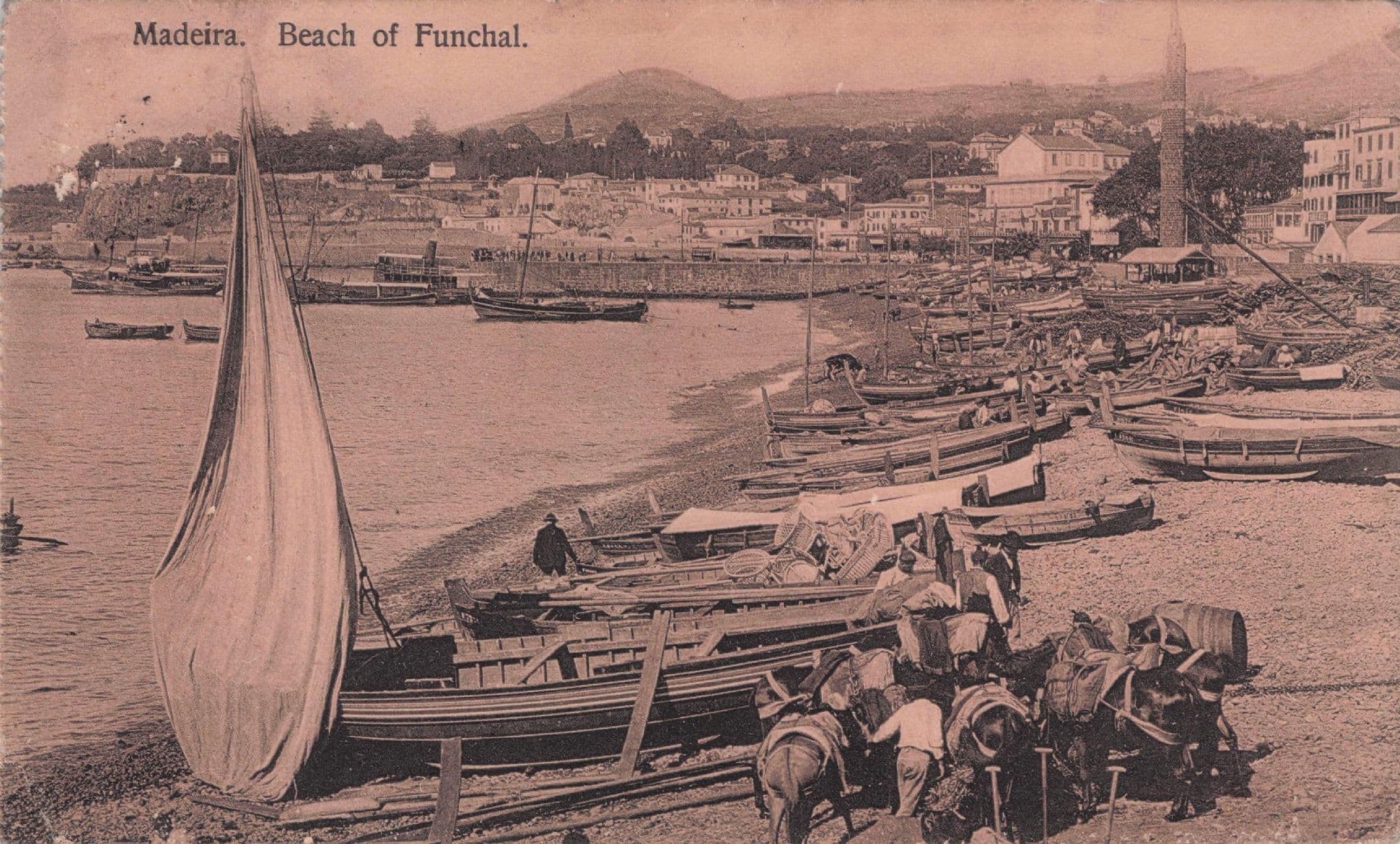 Madeira Fishing Sailing Boats in WW1 1914 Portugal Antique Postcard