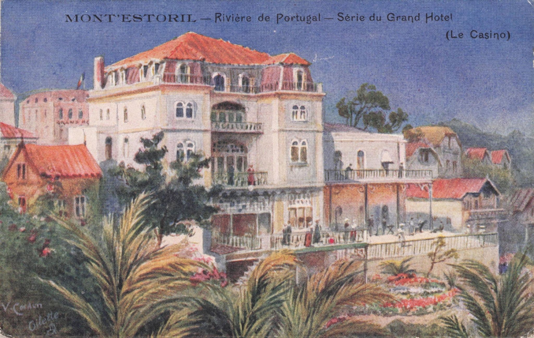 NP178 Antique rare painting postcard from the early 1900s and seems an officialsouvenir of the Grand Hotel at Mont Estoril unused bar light imperfections this is outstanding condition (ex minus).