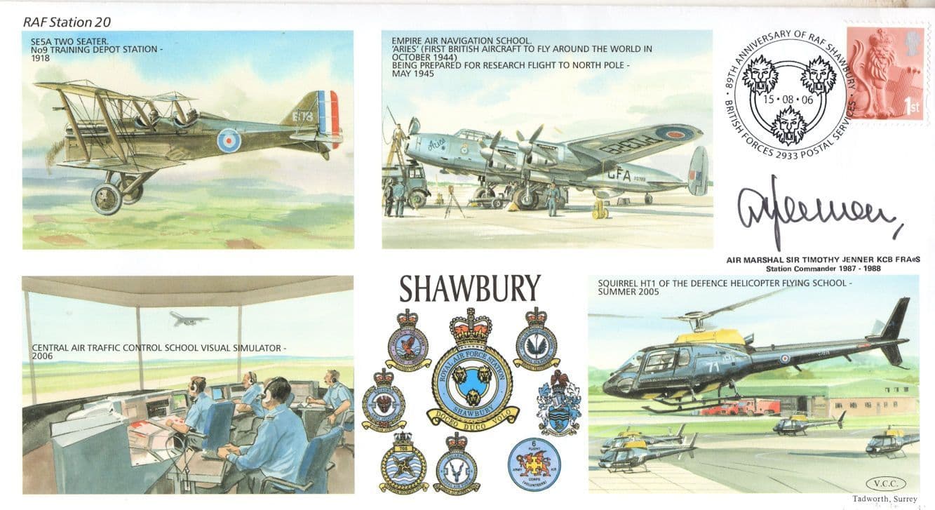 STB021 This is stunning RAF Shawbury collectors official limited first day cover hand signed by Sir Timothy Jenner where the signature rests perfectly accompanying the special hand commemorative franks. This comes with full lifetime COA as the signing has been officially certified by the publishers with full hallmarking and authenticity of the series further detailed in absolute brand new mint condition with additional signature on reverse to fully authenticate and a large map of Shawbury which this edition is LIMITED TO ONLY 100 and numbered 98 from the series (see image 2). You wont source better.