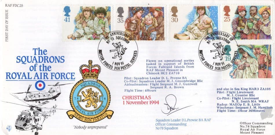 Squadrons Of The Royal Air Force Christmas 1994 Flown Hand Signed FDC