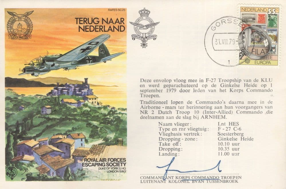 Terug Naar Nederland RAF Escaping Society Military 1979 Hand Signed FDC