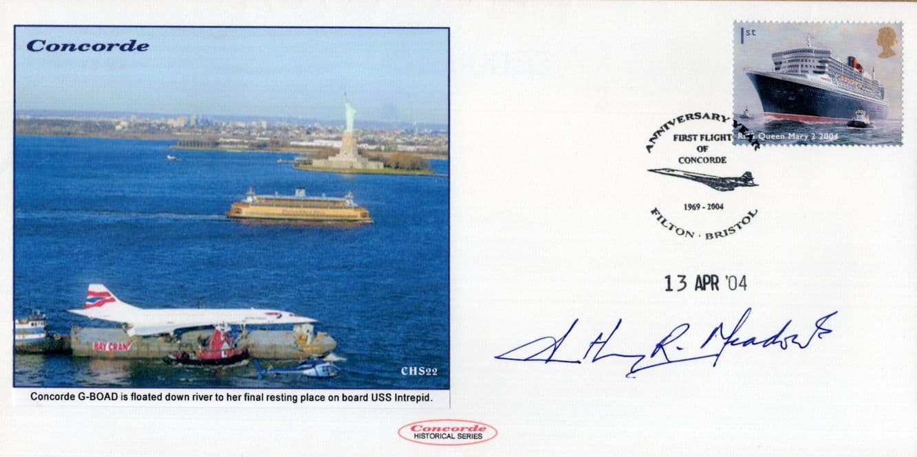 STB033 This is stunning Concorde collectors official limited first day cover hand signed by historic Concorde pilot to the Queen & later compassionate murderer (see below) where the signature rests perfectly accompanying the special hand commemorative franks. This comes with full lifetime COA as the signing has been officially certified by the publishers with full hallmarking and authenticity of the series of only 30 for worldwide distribution further detailed (see image 2) in absolute brand new mint condition. You wont source better.
