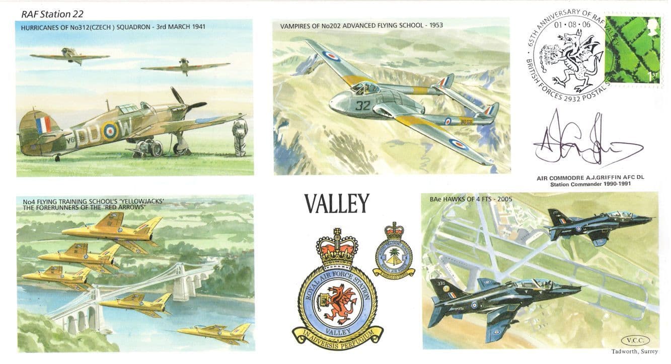 STB021 This is stunning RAF Valley collectors official limited first day cover hand signed by Commodore AJ Griffin where the signature rests perfectly accompanying the special hand commemorative franks. This comes with full lifetime COA as the signing has been officially certified by the publishers with full hallmarking and authenticity of the series further detailed in absolute brand new mint condition with additional signature on reverse to fully authenticate and a large map of Valley which this edition is LIMITED TO ONLY 100 and numbered 49 from the series (see image 2). You wont source better.