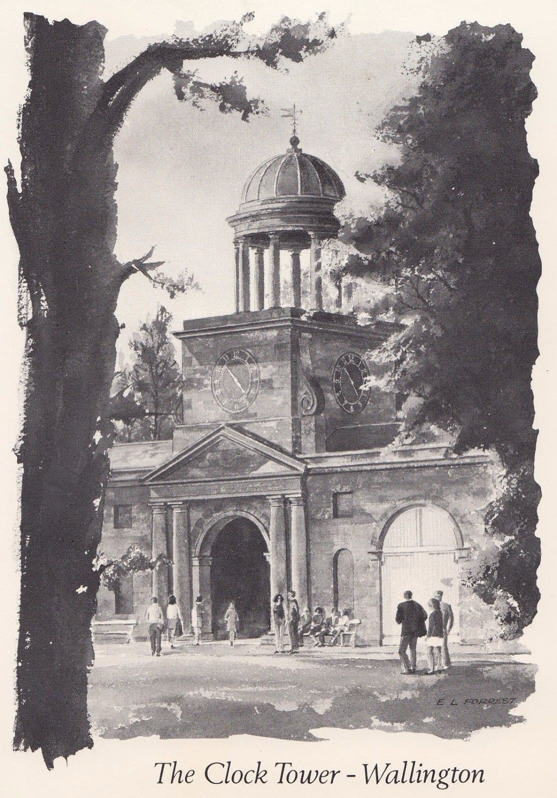 bg20 A 1980s postcard of this artist view of the clock tower at Wallington unused and mint