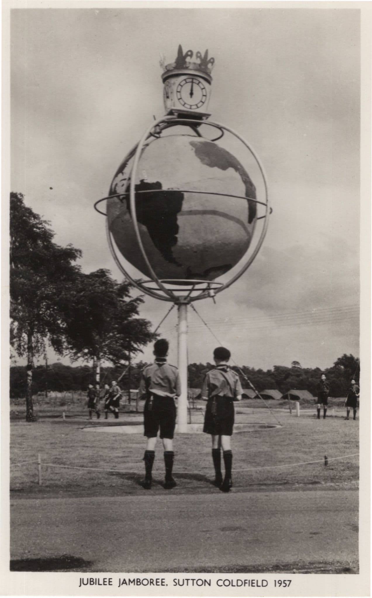 zx507 A vintage 1957 real photo postcard of the Boy Scouts Giant created Globe and Clock at the Jubilee Jamboree of the same year held at Sutton Coldfield unused and mint - same as brand new and you wont source better - Please see all my other old real photo Scouts and Guides postcard from this same former collector all listed at my store.